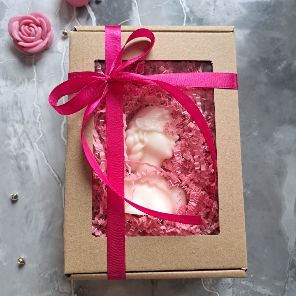 Box Prezentowy w komplecie: Świeca Sojowa popiersie Dziewczyny z Opaską na Oczach – 1 sztuka