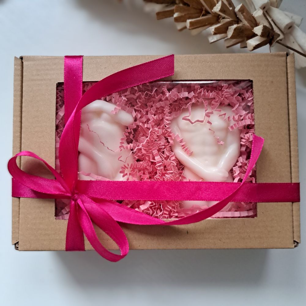 Box Prezentowy w komplecie 2 Świece Sojowe figurki ciała Kobiety i Mężczyzny