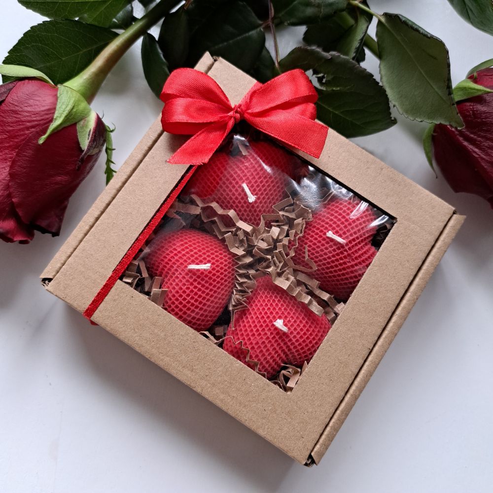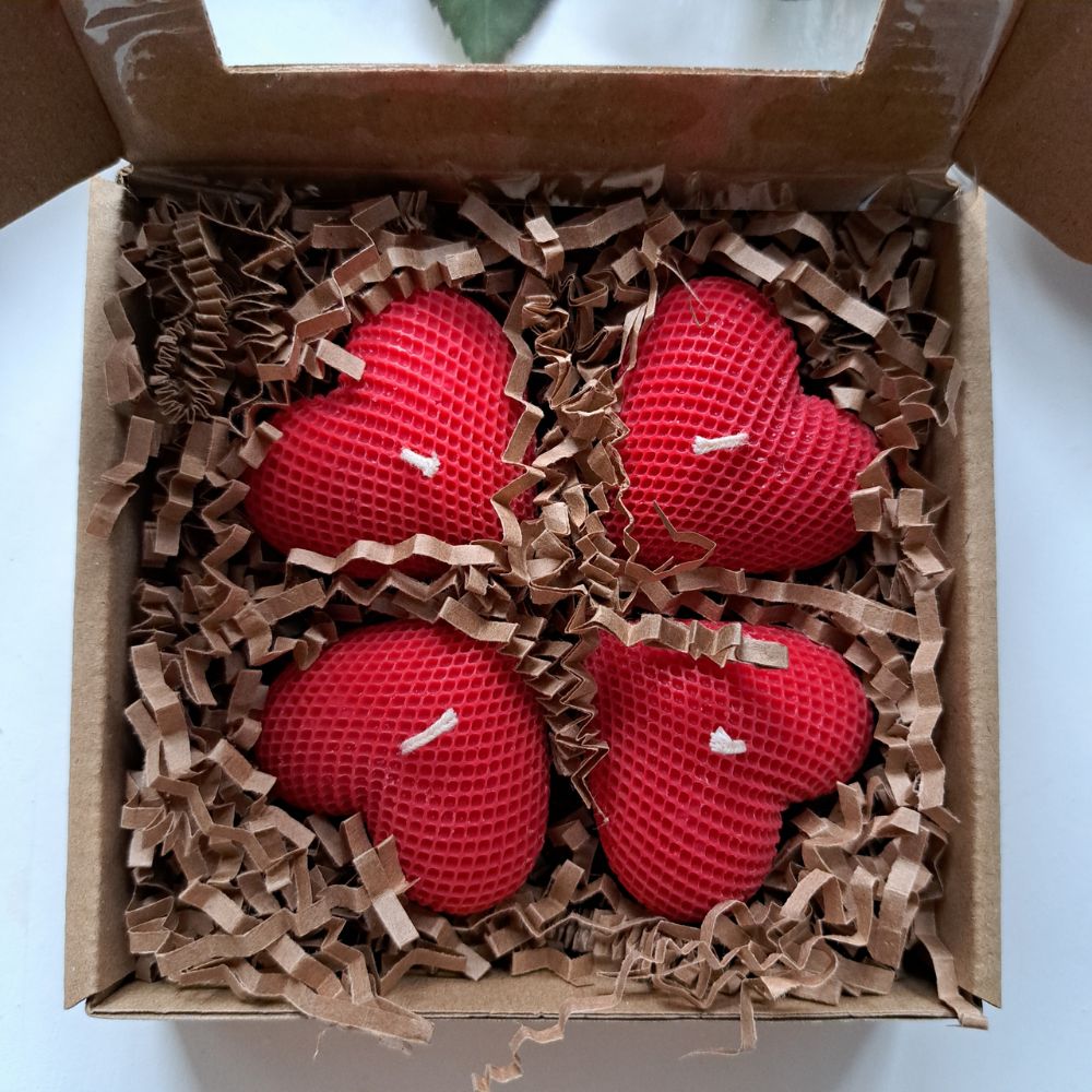 Box Prezentowy / Zestaw Świec Sojowych bezzapachowych w komplecie: 4 Małe Czerwone Serca