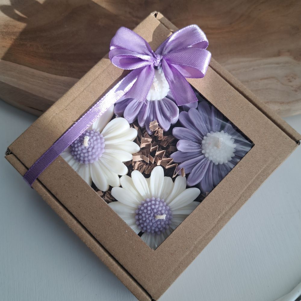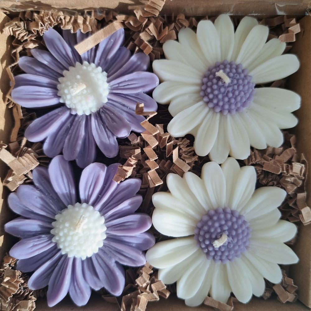 Box Prezentowy – Zestaw 4 świece sojowe Zapachowe Stokrotki z żółtym
