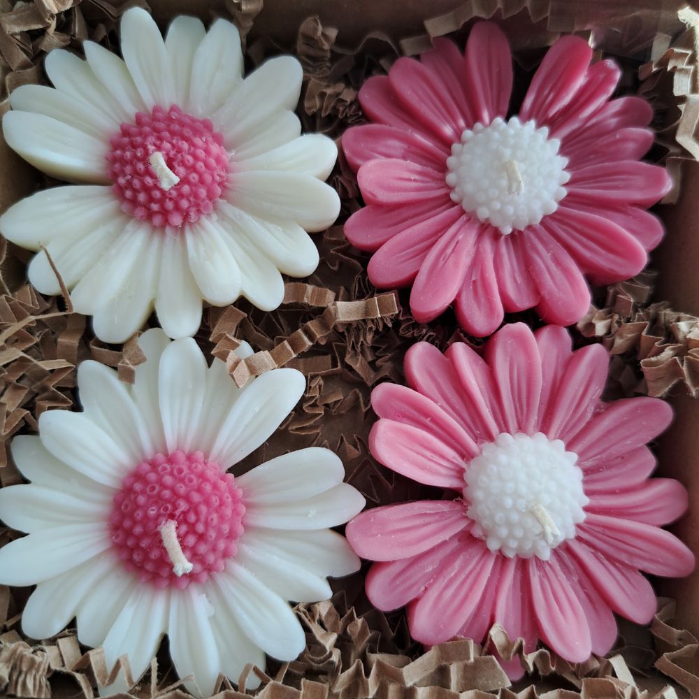 Box Prezentowy – Zestaw 4 świece sojowe Zapachowe Stokrotki z żółtym