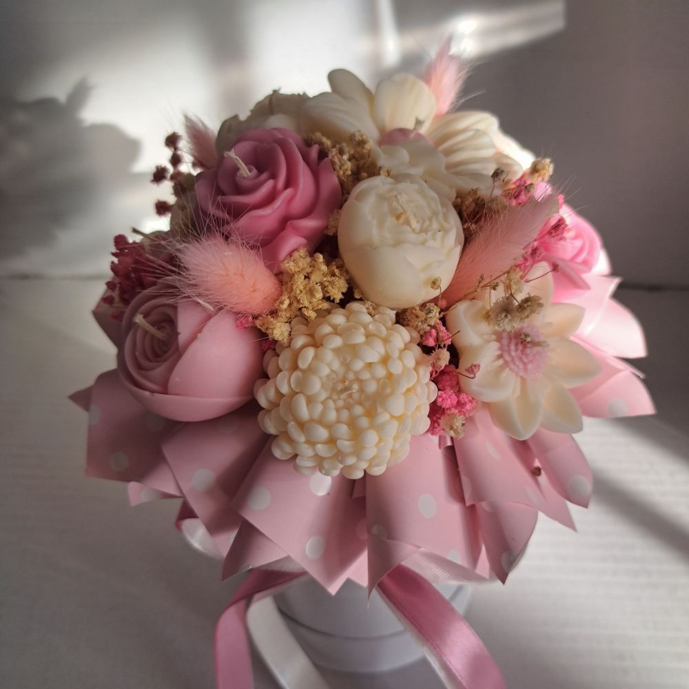 Mini Candle Flower Box – Świece Sojowe Zapachowe – Róże Pudrowy