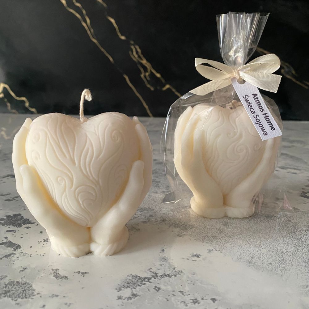 Świeca sojowa Serce w Dłoniach – Białe – na prezent lub podziękowanie