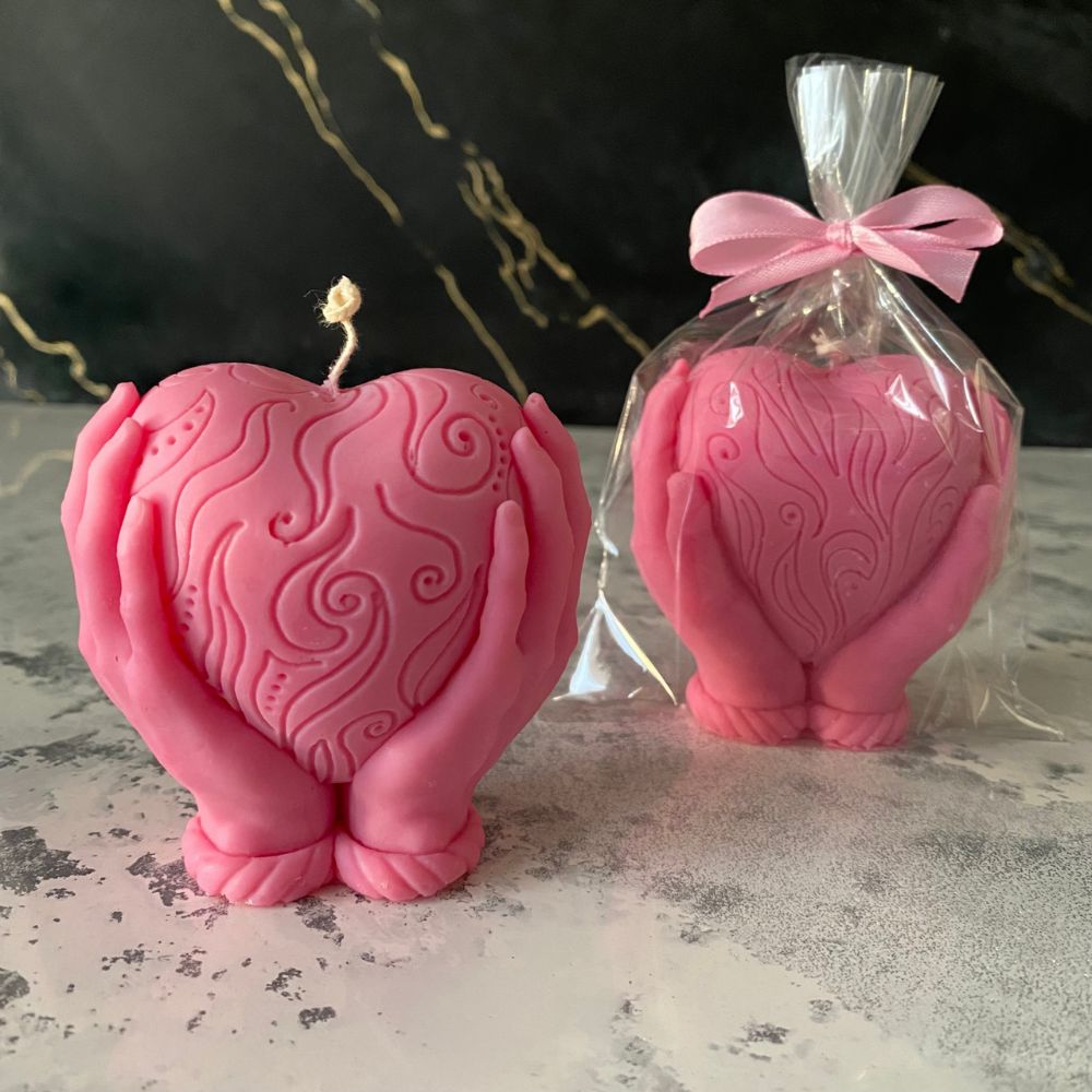 Świeca sojowa Serce w Dłoniach – Różowe – na prezent lub podziękowanie