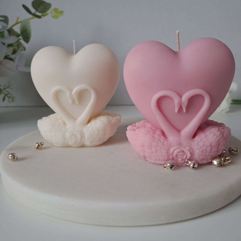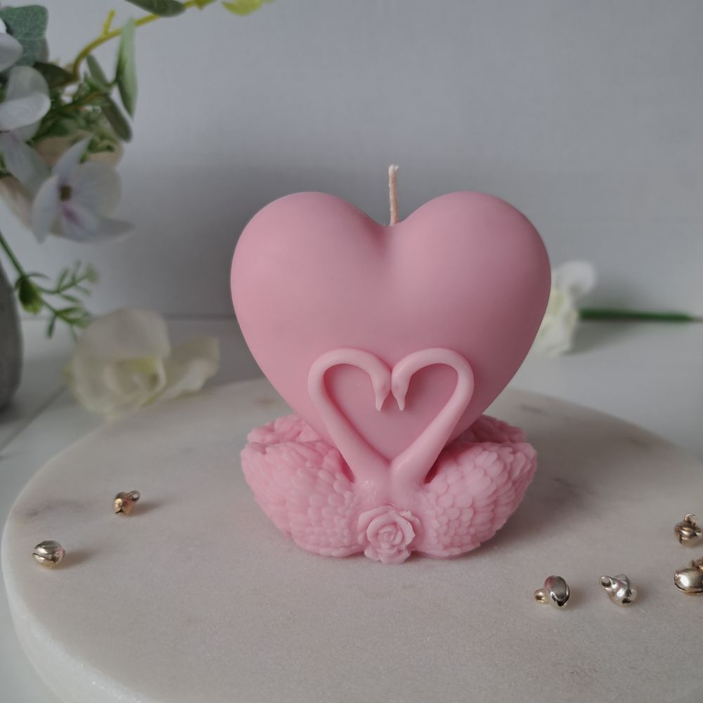 Świeca sojowa Serce w Łabędziach – Różowa