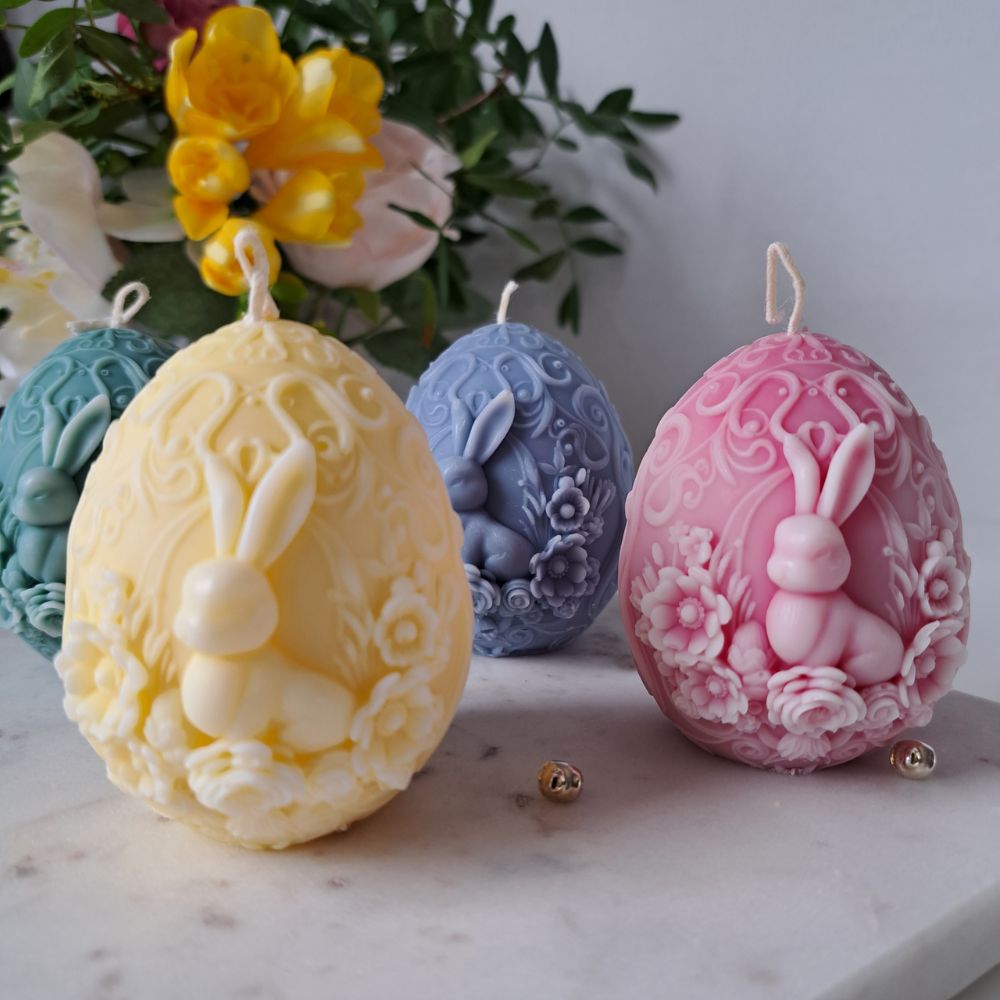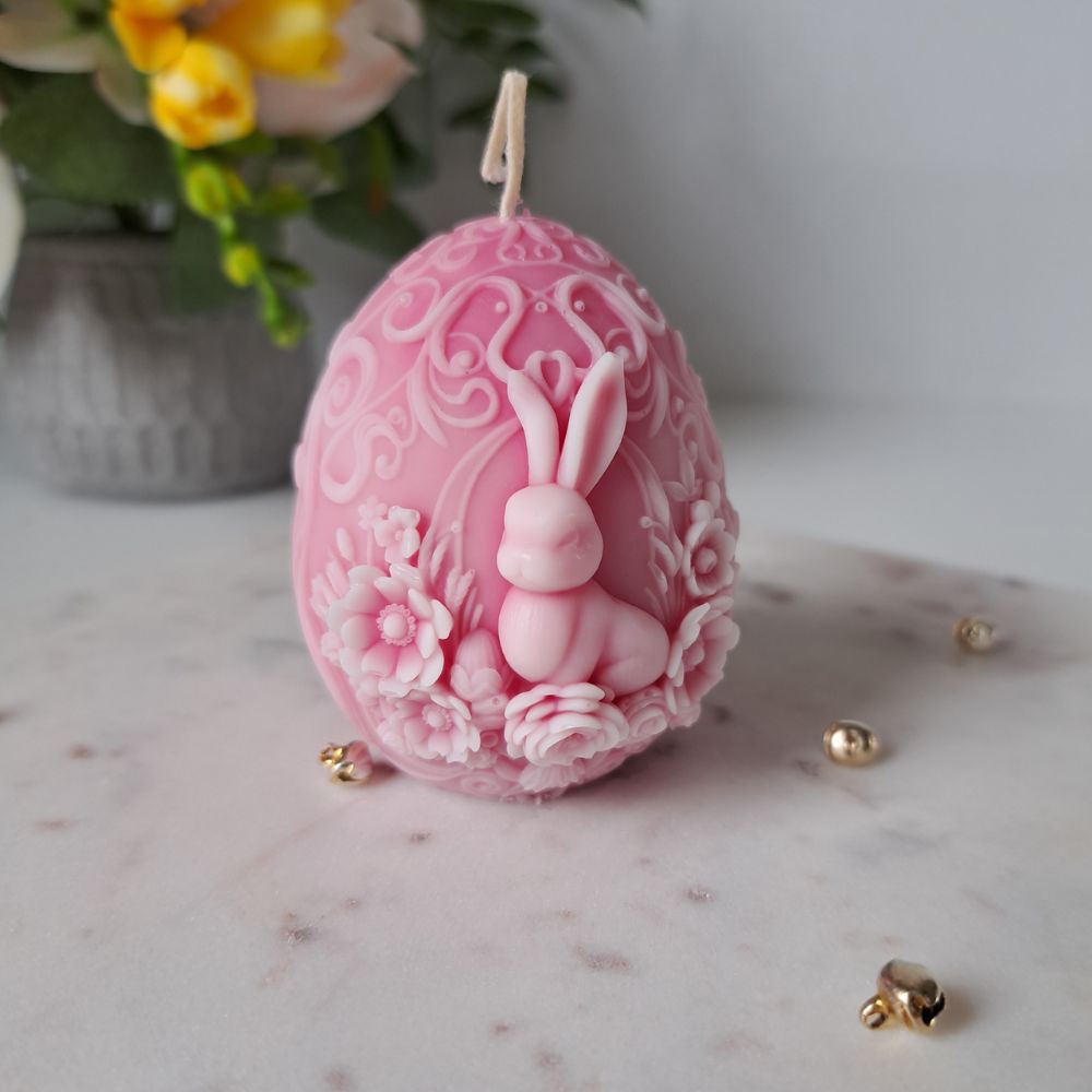Świeca sojowa na Wielkanoc – Jajko Pisanka z Zajączkiem – różowa ombre