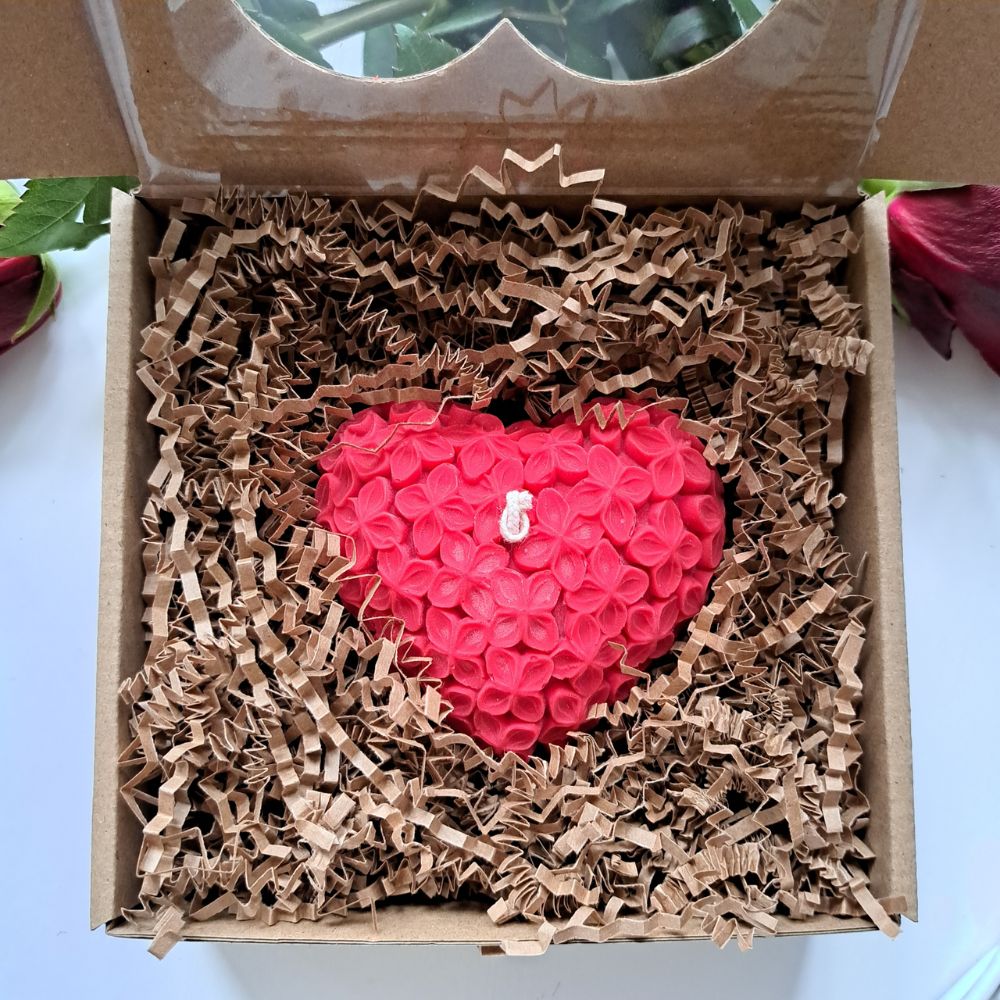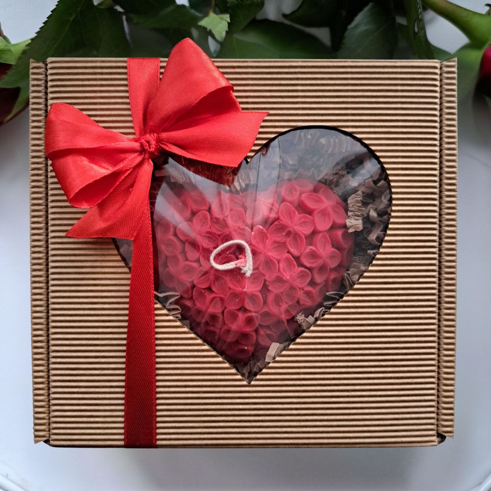 Świeca Sojowa Zapachowa Duże Czerwone Serce z Kwiatów o zapachu Róży – wersja prezentowa