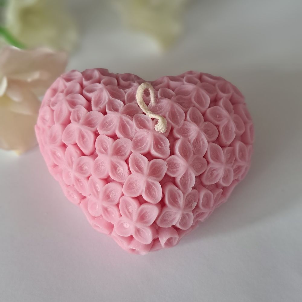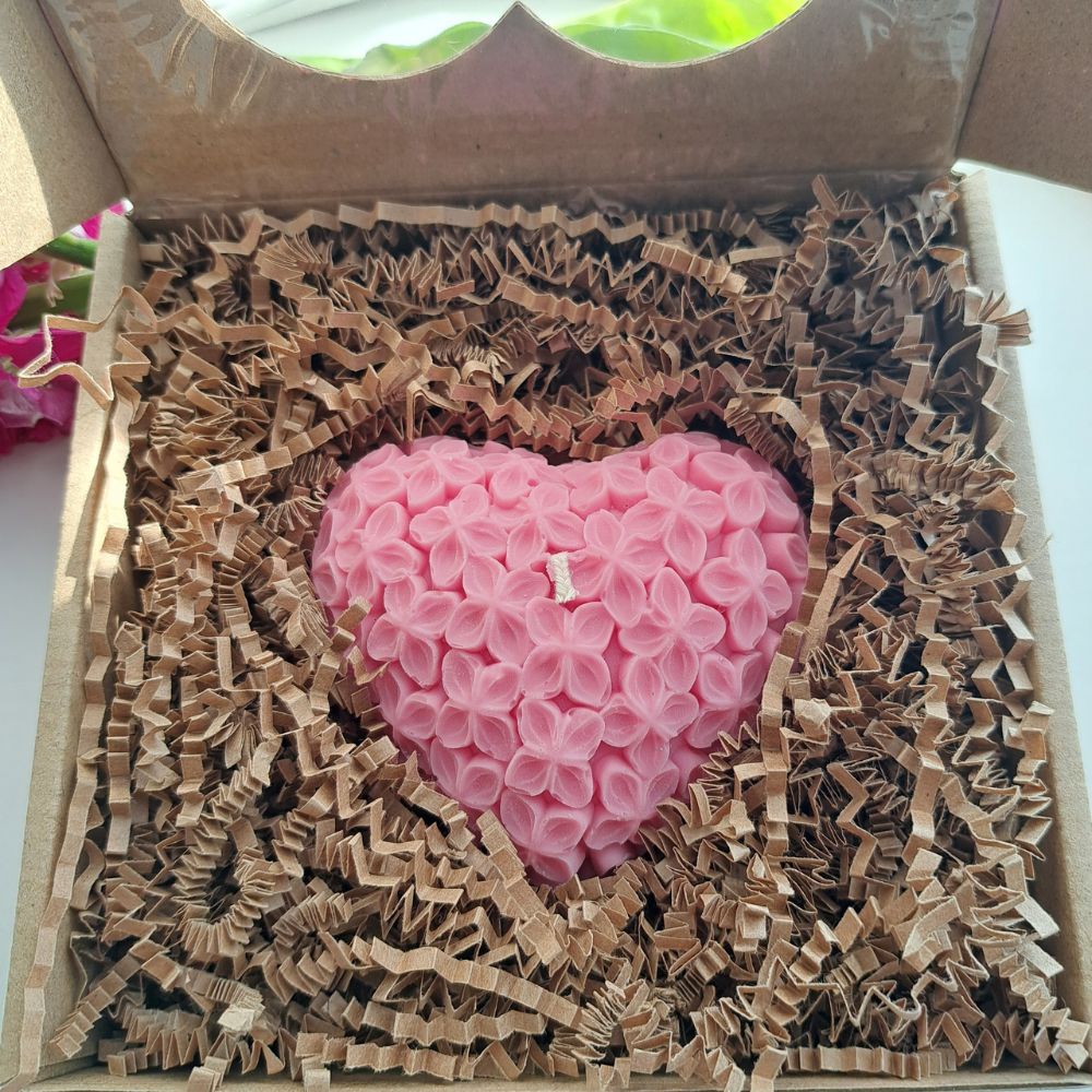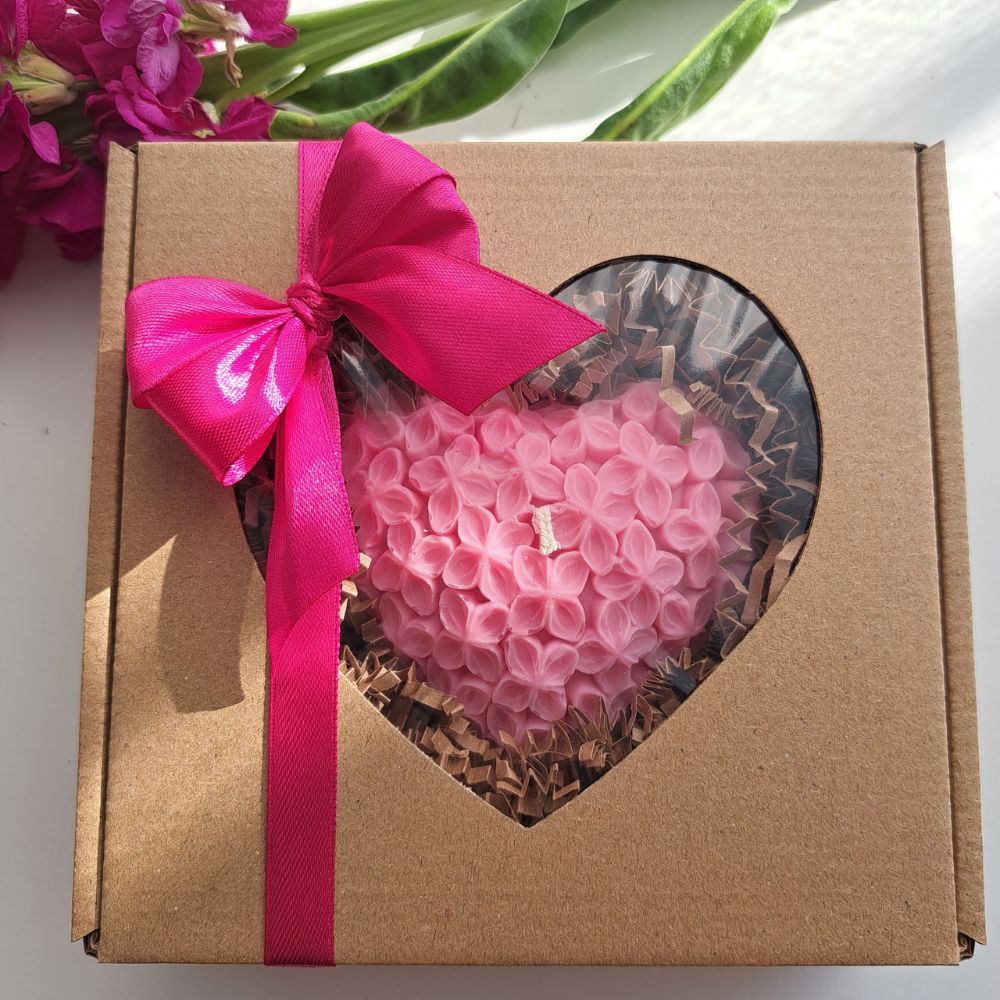 Świeca Sojowa Zapachowa Duże Serce z Kwiatów w kolorze Różowym – Wersja Prezentowa