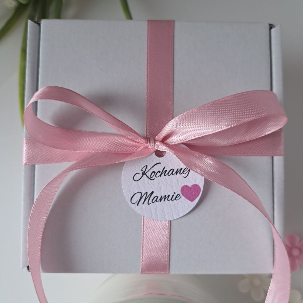 ✔️ Opakowanie prezentowe: biały kartonik ozdobiony różową tasiemką z bilecikiem „Kochanej Mamie”