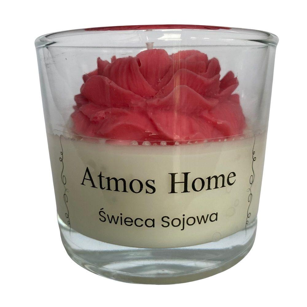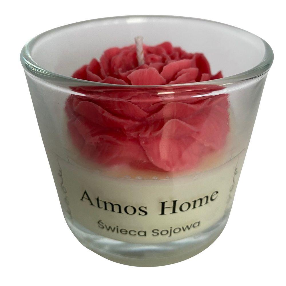 Świeca sojowa zapachowa w szkle z kwiatem Piwonii w kolorze Koralowym