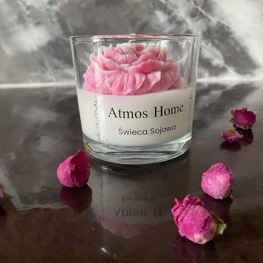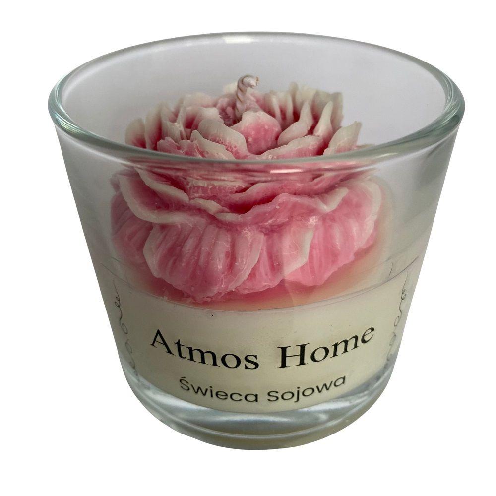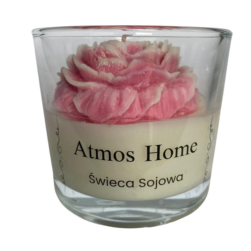Świeca sojowa zapachowa w szkle z kwiatem Piwonii w kolorze Różowego Ombre