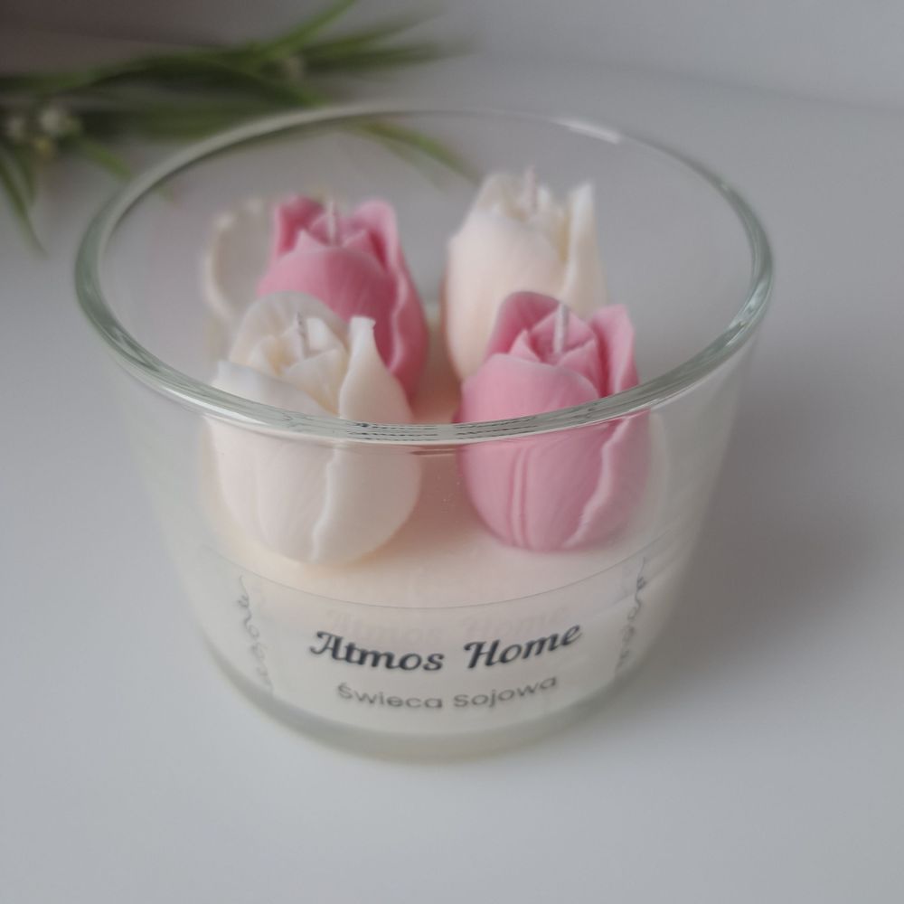 Świeca Sojowa Zapachowa w szkle z Tulipanami – wersja podarunkowa