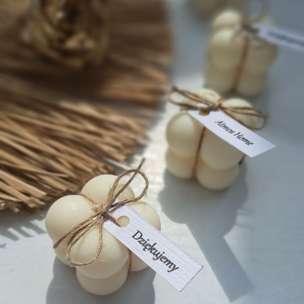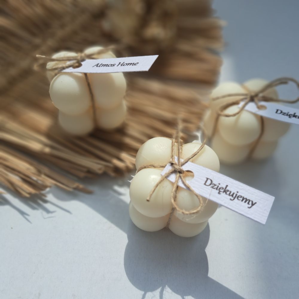 Świeczka sojowa mała Mini Bubble w stylu Boho z Twoją dedykacją na Podziękowania dla Gości